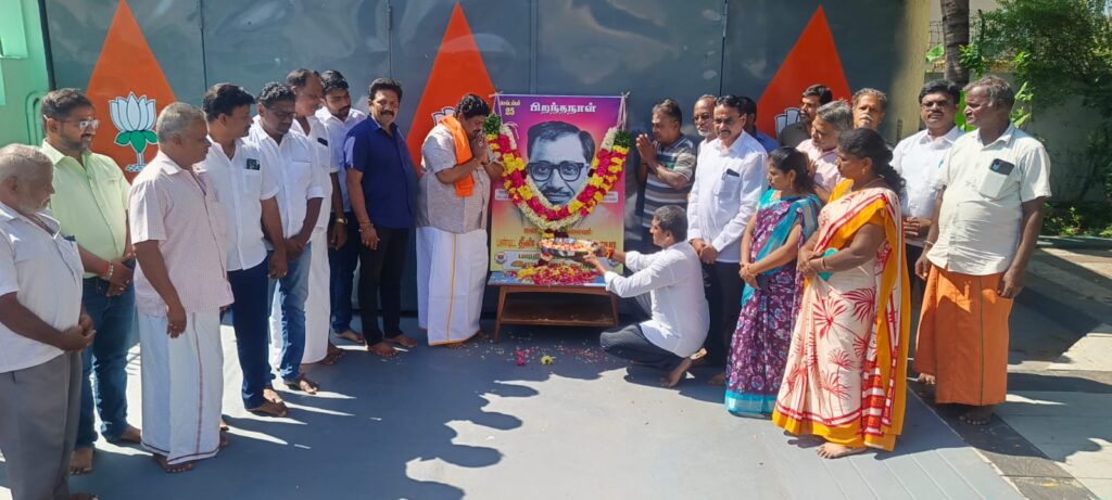 முன்னதாக நடைபெற்ற உபாத்யாயா பிறந்த தினவிழாவில் பாஜக மாவட்ட துணைத்தலைவர் வி.சேதுராமன், வழக்குரைஞர் ஆர்.டி.இளங்கோ, நகர தலைவர் பி.வேல்முருகன் உள்ளிட்டோர் பங்கேற்றனர்.