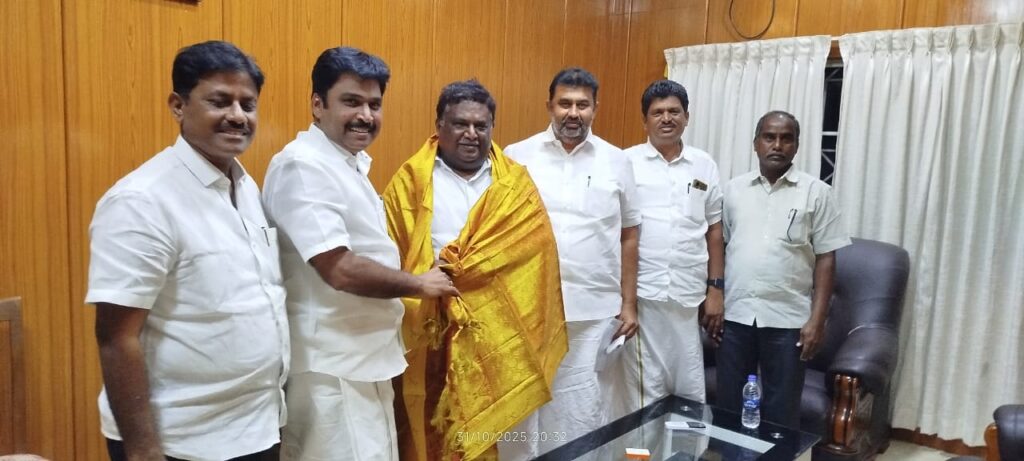 தமிழக போக்குவரத்து துறை மற்றும் மின்சாரத்துறை அமைச்சர் சிவசங்கரை நாமக்கல் பாராளுமன்ற உறுப்பினர் VS.மாதேஸ்வரன், கொங்குநாடு மக்கள் தேசிய கட்சியின் மாநில இளைஞரணி செயலாளர் சூர்யமூர்த்தி, மாநில கொள்கை பரப்பு செயலாளர் அசோகன், நாமக்கல் தெற்கு மாவட்ட பொருளாளர் சசிகுமார் ஆகியோர் மரியாதை நிமித்தமாக நேரில் சந்தித்து கோரிக்கை மனு அளித்தார்.