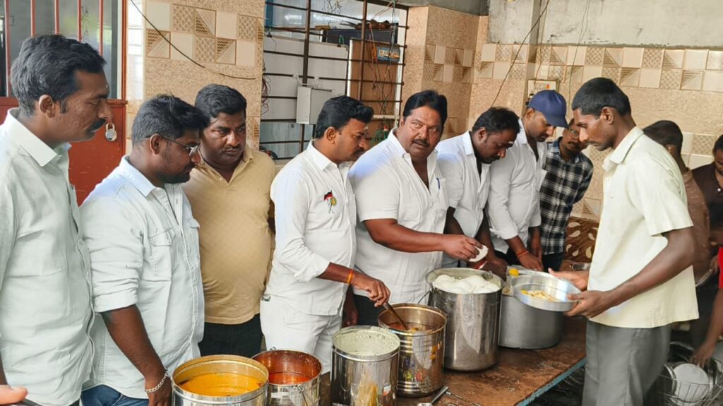 பிறந்தநாளை தொடர்ந்து காட்டூர் ரோட்டில் உள்ள அனைக்கும் கரங்கள் காப்பகத்தில் 100-மேற்பட்டவர்களுக்கு ராசிபுரம் நகர திமுக இளைஞரணி அமைப்பாளர் R.யோகராஜன் துணை அமைப்பாளர்கள் V.தினேஷ்,T.தன்ராஜ்,V.பாண்டியன்,R.ராஜேஷ், G.S.ரகுபதி, R.லவக்குமார், L.T.மணிகண்டன்,K.ரியாஸ் ஆகியோர் அனைவருக்கும் காலை உணவு வழங்கினர். இந்த நிகழ்ச்சியில் சிறப்பு விருந்தினராக ராசிபுரம் நகர்மன்ற தலைவர் முனைவர் R.கவிதாசங்கர், பங்கேற்று காப்பகத்தில் உள்ளவர்களுக்கு உணவு வழங்கினார். மாவட்ட திமுக பிரதிநிதி K.ஆனந்தன், நகர திமுக பொருளாளர் S.K.அன்சர் மற்றும் இளைஞர் அணி நிர்வாகிகள் கலந்து கொண்டனர்.