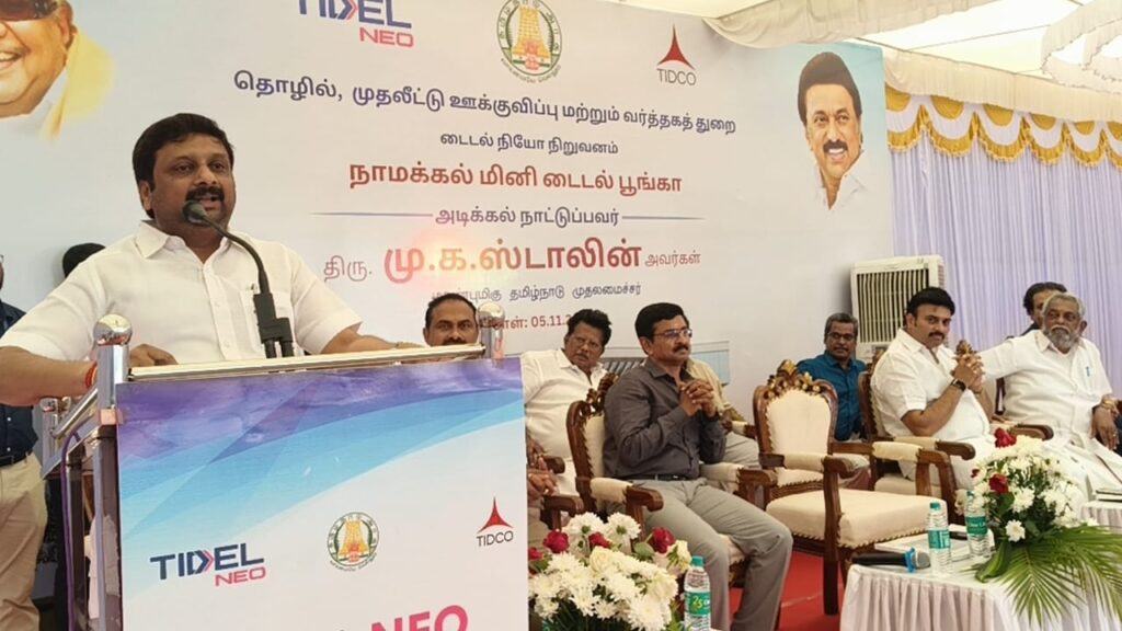 அதனைத் தொடர்ந்து, தற்போது சென்னையிலிருந்து காணொளி காட்சி வாயிலாக, மினி டைடல் பூங்கா அமைப்பதற்கு அடிக்கல் நாட்டி பணிகளை தொடங்கி வைத்தார்.