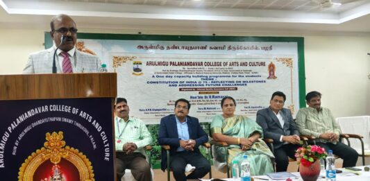 உலகில் பெரும்பாலான நாடுகள் மக்களாட்சி முறையை பின்பற்றும் நிலையில் வாக்கு, வாக்காளர் , தேர்தல்கள் குறித்த கல்வியானது இன்னும் அரசியல் அறிவியலில் ஒரு உட்பிரிவு பாடமாக இருப்பது ஏற்புடையதல்ல. வாக்காளரியல் கல்வி பல்கலைக்கழகங்களில் தனி படிப்பாக இடம் பெற வேண்டும் என தமிழ்நாடு லோக் ஆயுக்தா உறுப்பினர் டாக்டர் வீ.ராமராஜ் குறிப்பிட்டார். இந்திய அரசியலமைப்பின் 75 ஆண்டு ஆண்டு கால மைல் கற்களும் சவால்களும் என்ற தலைப்பில் பழனி பழனியாண்டவர் கலை மற்றும் பண்பாட்டுக் கல்லூரியின் முதல்வர் … Continue reading பல்கலைக்கழகங்களில் வாக்காளரியல் கல்வி தனி படிப்பாக இடம் பெற வேண்டும்: லோக் ஆயுக்தா உறுப்பினர் டாக்டர் வீ.ராமராஜ் வலியுறுத்தல்