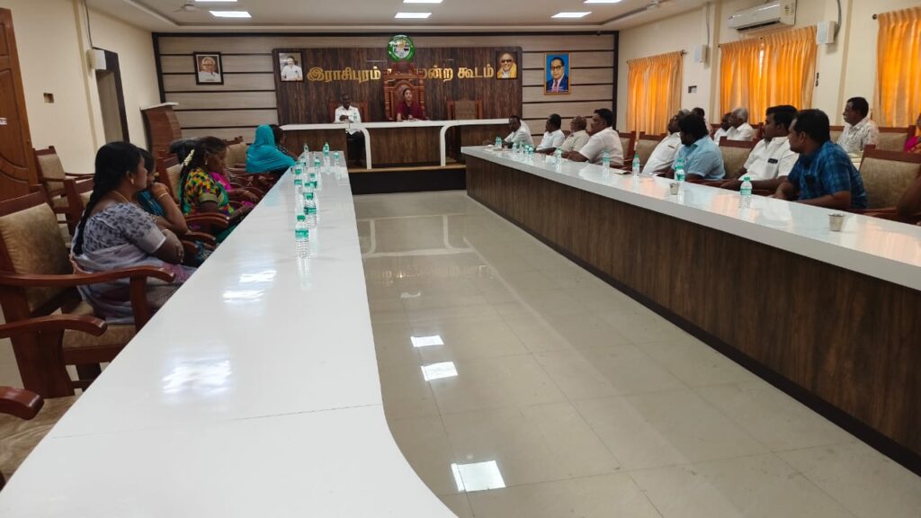 ராசிபுரம் நகர மன்றக் கூட்டம் மன்ற கூட்ட அரங்கில் வியாழக்கிழமை நடைபெற்றது. கூட்டத்திற்கு நகர்மன்ற தலைவர் ஆர்.கவிதா சங்கர் தலைமை வகித்தார். நகராட்சி பொறியாளர் கே.பழனி முன்னிலை வகித்தார்.