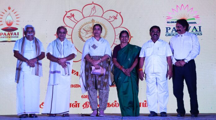 தொடர்ந்து விழாவில் பேசிய, ஆடிட்டர் என்.வி.நடராஜன், பாவை நிருத்யாலயா மாணவிகள் வழங்கிய ஆண்டாள் திருக்கல்யாணம் நடன அரங்கேற்றம் பக்தி மற்றும் பாரம்பாியத்தின் அழகை வெளிப்படுத்தும் வகையில் அமைந்தது. பாவைக் கல்விக் குழுமம், தன் தனிப்பட்ட அடையாளத்தோடு சிறந்த பரதநாட்டிய கலை பண்பாட்டு மையமாக திகழ்கின்ற பாவை நிருத்யாலயா என்ற நடனப்பள்ளியை ஆரம்பித்து, மாணவியர்களை பரதத்தில் வல்லுநர்களாக உருவாக்கி வருகிறது. பெரு நகரங்களில் மாணவர்களுக்கு கிடைக்கக்கூடிய ஆங்கில பேச்சாற்றல், தலைமைப்பண்பும் கூடவே இசை, பாட்டு, நடனம், யோகா, கராத்தே மற்றும் விளையாட்டுகள் போன்றவற்றிற்கு பாவை வித்யாஸ்ரம் பள்ளிகளில் அனைத்து வாய்ப்புகளும் உருவாக்கி கொடுக்கப்பட்டுள்ளது என்றார். நிகழ்ச்சியில் பாவை வித்யாஸ்ரம் பள்ளிகளின் இயக்குநர் சதீஸ், முதல்வர் ரோஹித், தலைமையாசிரியை நிரஞ்சனி உள்ளிட்டோர் கலந்து கொண்டனர்.