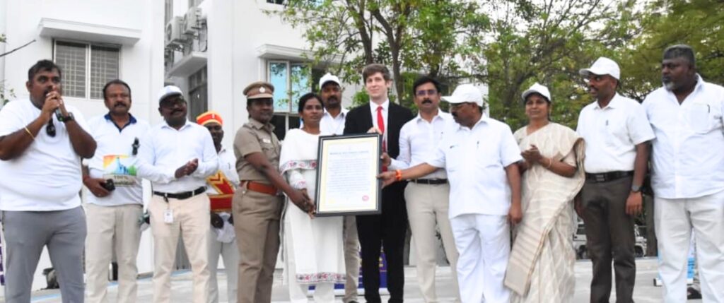 ‘தேர்தல் விழிப்புணர்வுச் சின்னத்தின் மிகப்பெரிய மனித வடிவத்தை’ உருவாக்கும் சாதனை முயற்சியாக இந்நிகழ்ச்சி ஏற்பாடு செய்யப்பட்டிருந்தது. மேலும், வாக்காளர்களிடையே விழிப்புணர்வை ஏற்படுத்துவதையும், ஜனநாயக கடமையினை நிறைவேற்றுவதில் பொறுப்புணர்வுடன் கூடிய பங்கேற்பை ஊக்குவிப்பதையும் இந்த முயற்சி மேற்கொள்ளப்பட்டது. இந்நிகழ்வின் நிறைவில் மாவட்ட ஆட்சியர் துர்காமூர்த்தியிடம்,வோர்ல்ட் ரெர்கார்ட்ஸ் யூனியன் நிறுவனத்தின் மேலாளர் கிறிஸ்டோஃபர் டைலர் கிராஃப்ட் , சர்வ சாதனை நிகழ்வினை உறுதிபடுத்திடும் வகையில் பதக்கம் மற்றும் சான்றினை வழங்கினார். இதில் மாவட்ட காவல் கண்காணிப்பாளர் எஸ்.விமலா, மாவட்ட வருவாய் அலுவலர் மா.க.சரவணன், சிப்காட் மாவட்ட வருவாய் அலுவலர் ம.கண்ணன், பாவை கல்வி நிறுவனங்களின் தலைவர் என்.வி.நடராஜன், தாளாளர் மங்கை நடராஜன் உள்ளிட்ட அலுவலர்கள் பலரும் முன்னிலை வகித்தனர்.